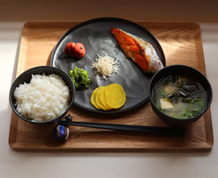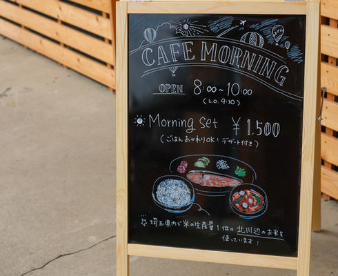 地元ブランド米「コシヒカリ」を使用した、炊き立てご飯の朝定食(1,500円)をご提供します。自然の中で、贅沢な朝のひとときをお楽しみください。